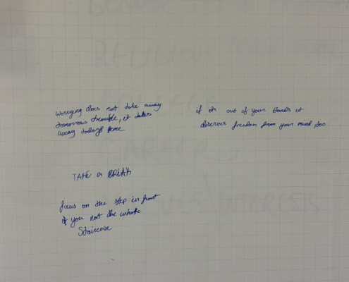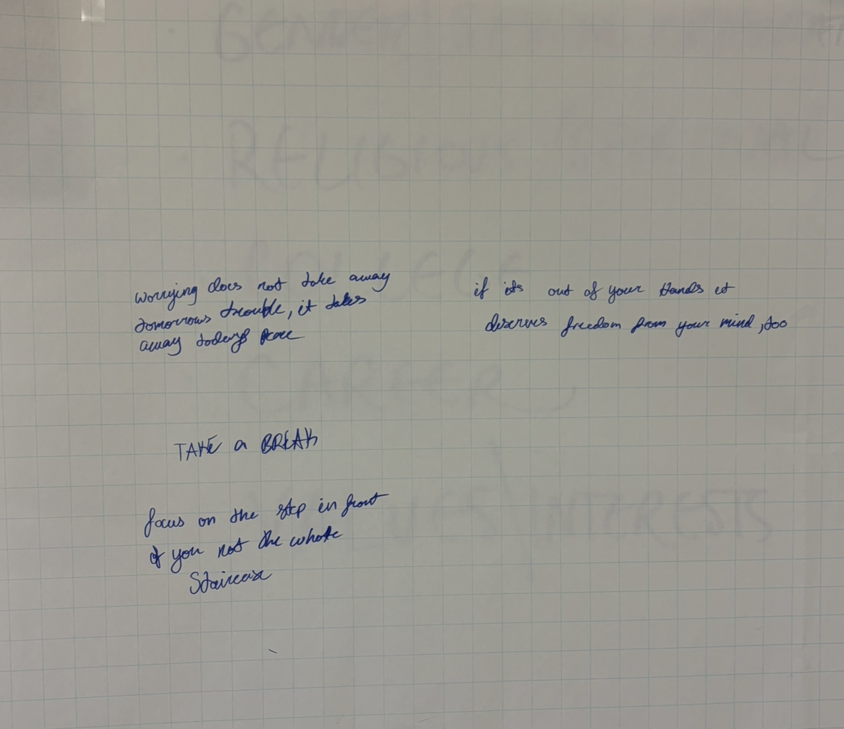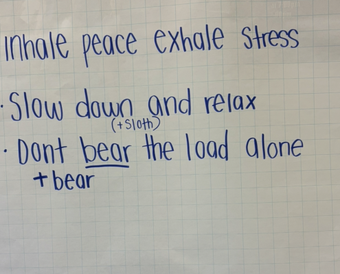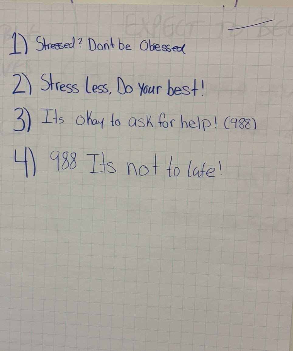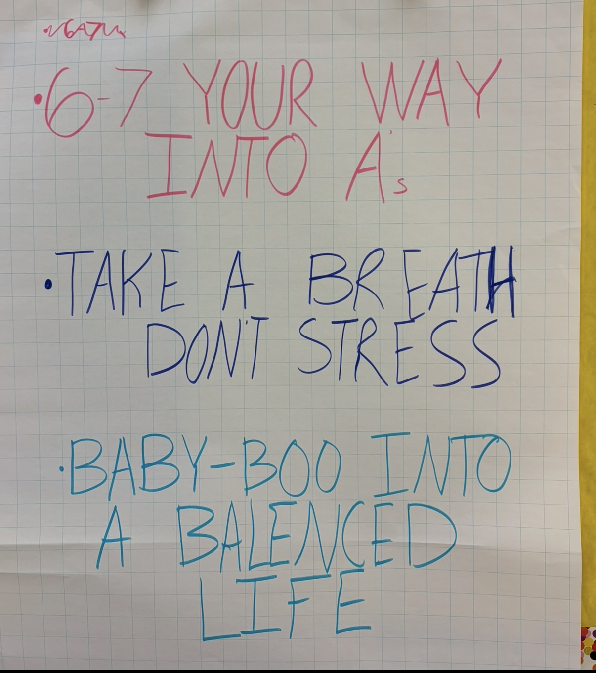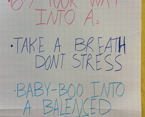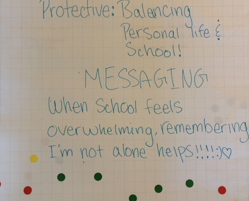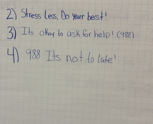 Advice like don’t worry so much about mistakes because “I’ve messed up a lot in my life but each mistake made me stronger.” shared by APS class member, Gus Murino-Brault. A sampling of what other students wrote on the banner about supporting their own resiliency include; connecting with friends, asking for help when I need it, listening to music, playing sports and family.