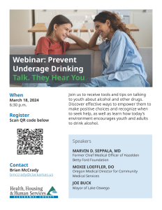 Join us to receive tools and tips on talking to youth about alcohol and other drugs. Discover effective ways to empower them to make positive choices and recognize when to seek help, as well as learn how today’s environment encourages youth and adults to drink alcohol.